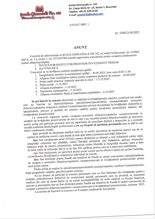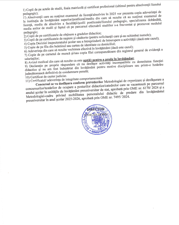 pentru absolvenții clasei a VIII-a, în anul școlar 2024—2025